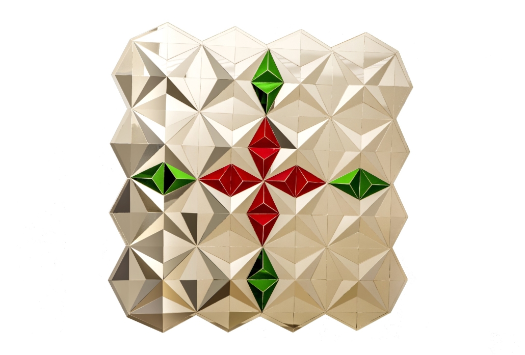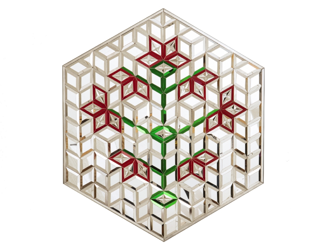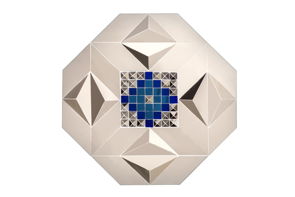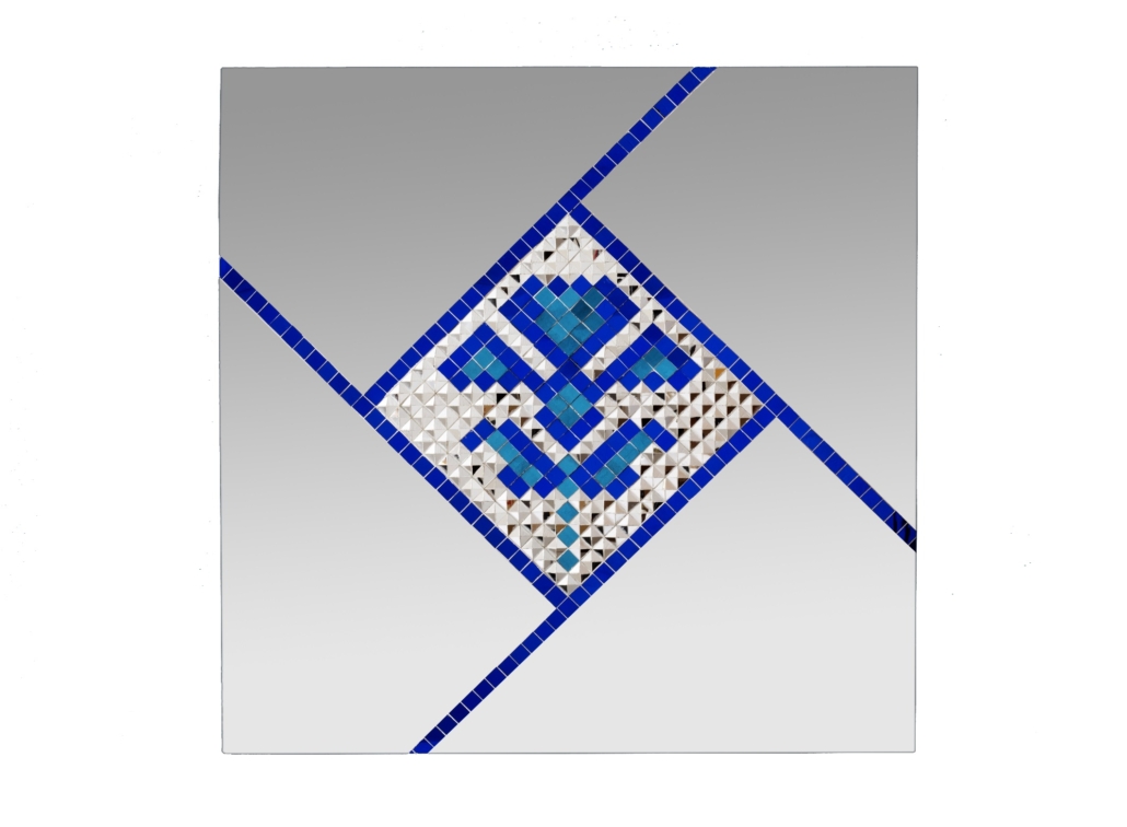 Mirror, revers-glass painting and Plaster on Wood – 90*90 cm